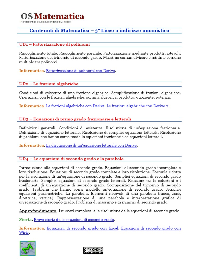 Programma Di Matematica Per Il Iii Anno Di Liceo Ad Indirizzo