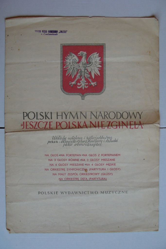 Source Image @ Informacje o POLSKI HYMN NARODOWY stare NUTY CZECHOWICE - 7520325008 w archiwum Allegro. Data zakończenia 2019-10-18 - cena 15 zł